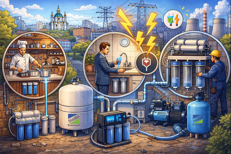 Отключения электроэнергии и перебои с водоснабжением стали для киевского бизнеса не форс-мажором, а новой реальностью. Кафе, офисы, производства, медицинские и сервисные компании вынуждены заранее продумывать, как обеспечить себя чистой водой даже в условиях блэкаутов. На практике именно автономные решения в сфере водоочистки и накопления воды позволяют бизнесу работать без остановок и финансовых потерь.